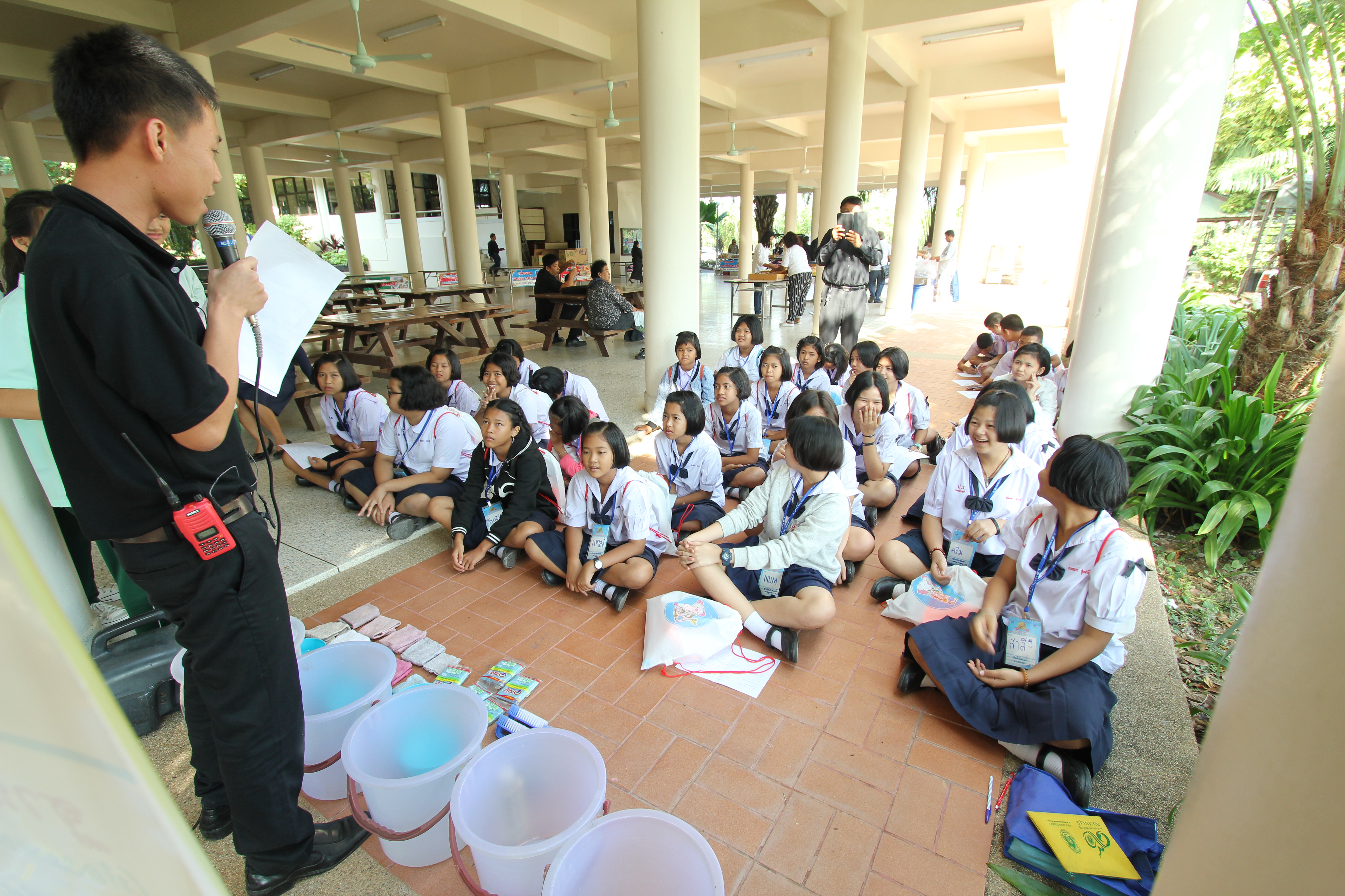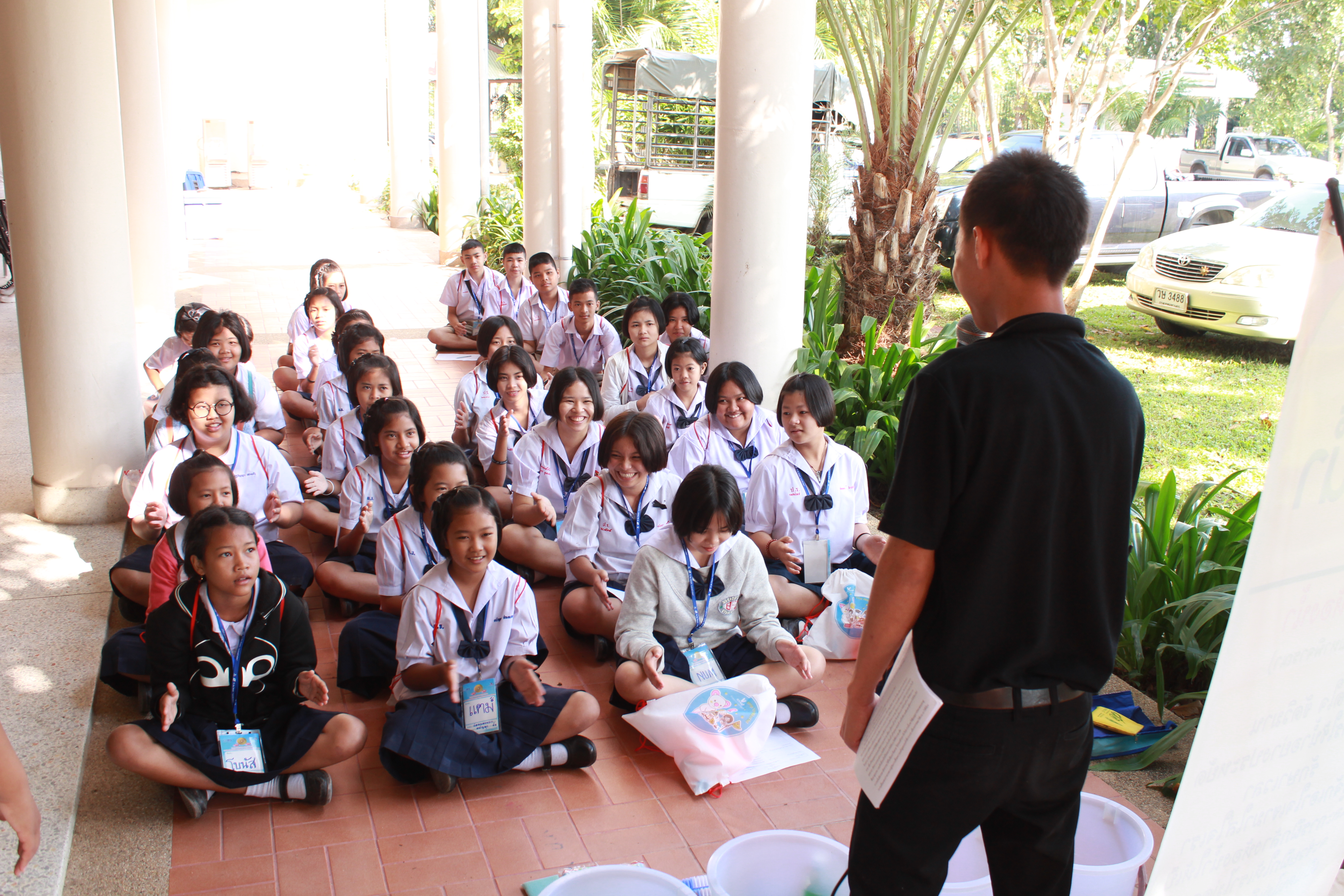 จากนั้นวิทยากรกิจกรรมได้มานำสันทนาการ, สอนปรบโค้ดความดีสากล, อธิบายการแบ่งกลุ่มและเข้าฐาน