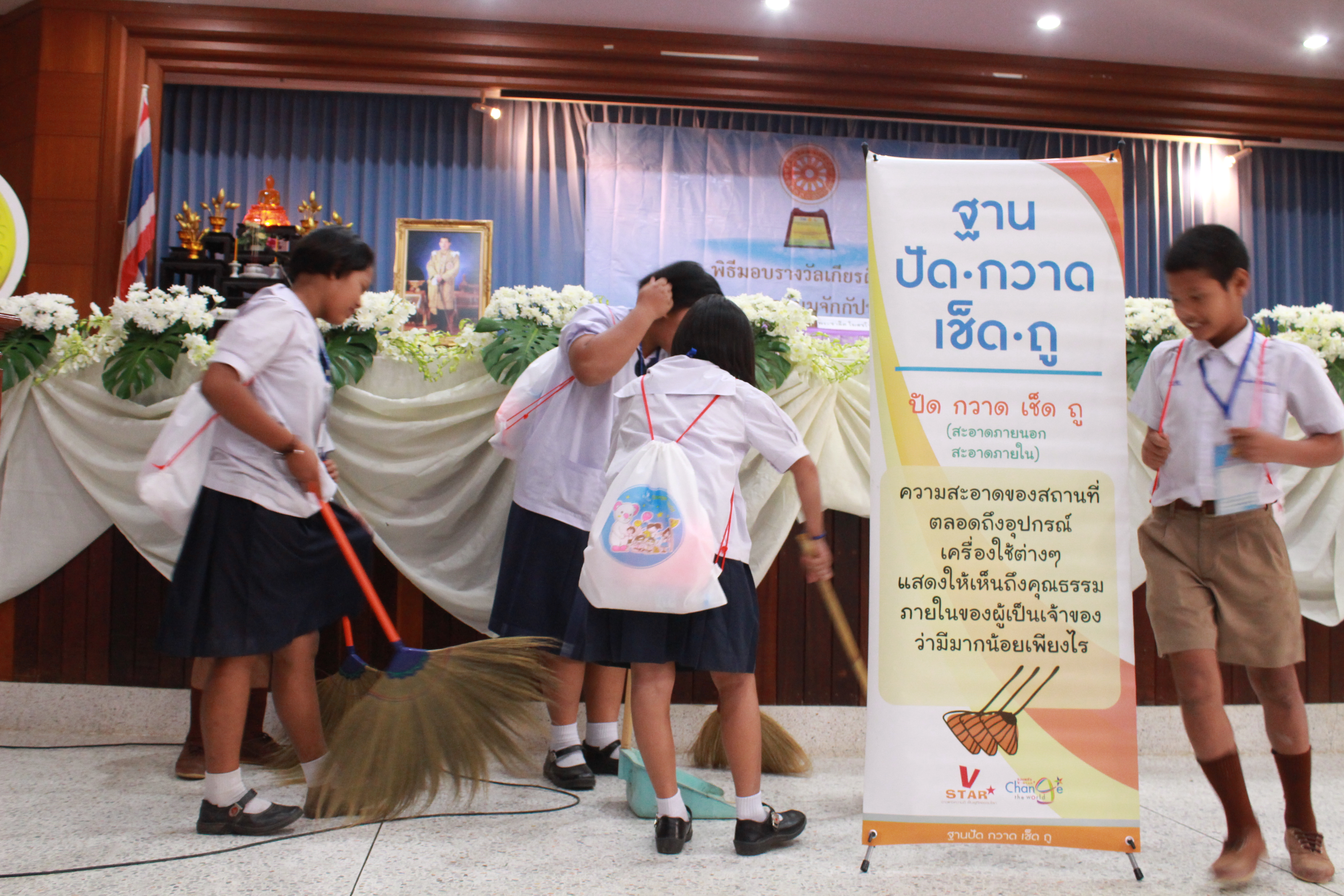 งานเริ่มขึ้นเมื่อเวลา ๐๘.๐๐ น. เด็กดี V-STAR จากหลายโรงเรียนในจังหวัดเพชรบุรี มารวมตัวกันเพื่อทำความดี โดยมีพระอาจารย์ชวลิต โฆสชโว พระอาจารย์ประจำโครงการสวดธัมมจักกัปปวัตตนสูตร มาแสดงธรรมในช่วงเช้า