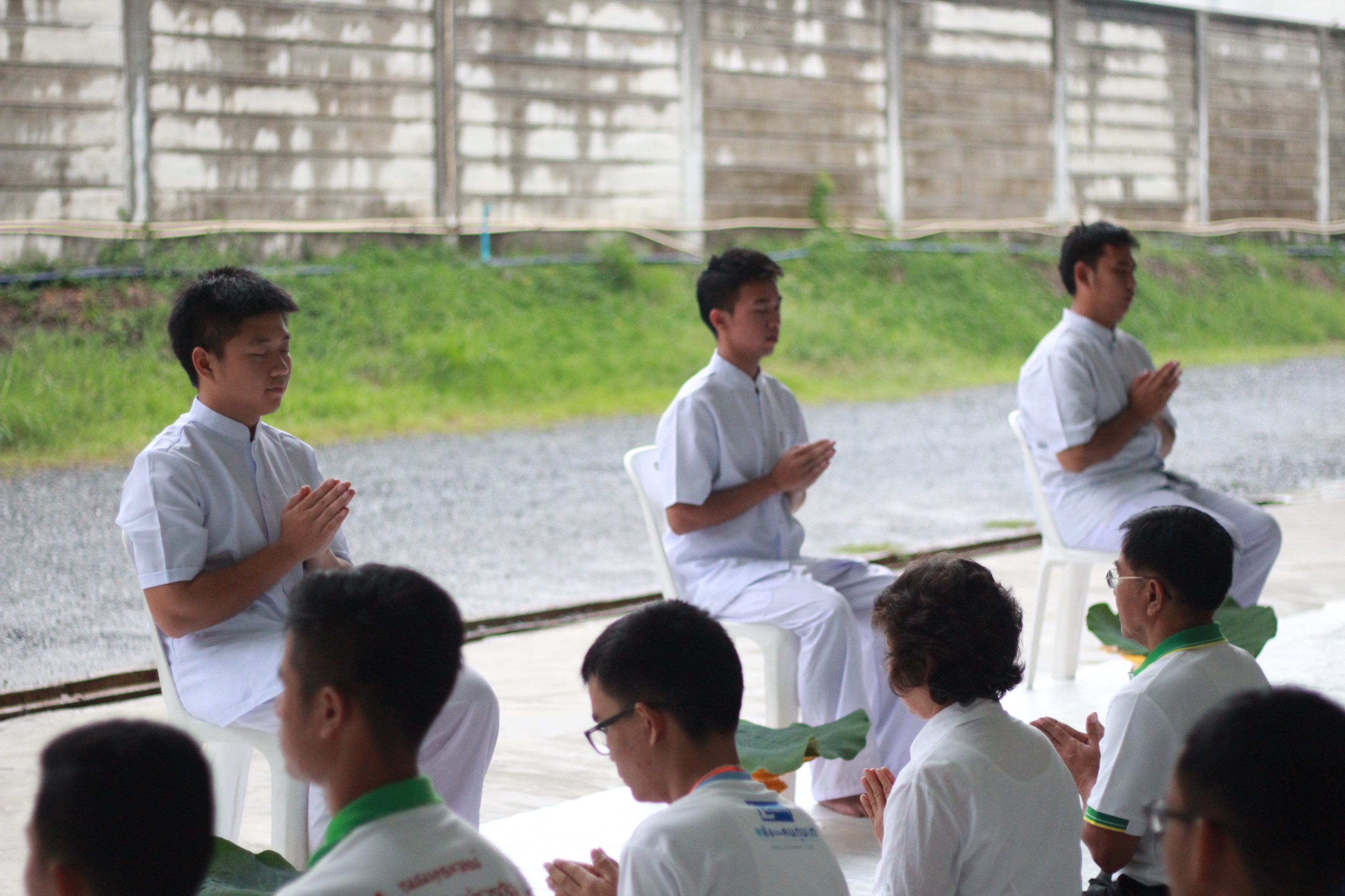 บรรยากาศท่ามกลางสายฝนที่ชุ่มช่ำแต่อบอุ่นไปด้วยผู้ร่วมงานที่มีความเบิกบานใจ และปลื้มปีติใจกับการออกบวชของนาคธรรมทายาทที่กำลังจะยกตนจากผู้นับถือพระรัตนตรัยให้เป็นส่วนหนึ่งของพระรัตนตรัยซึ่งว่าที่ผู้ช่วยพระพี่เลี้ยงก็มีความตั้งใจที่จะทำหน้าที่ในการฝึกฝนอบรมตนเอง พร้อมกับทำหน้าที่ผู้ช่วยพระพี่ที่ด้วยการเป็นส่วนหนึ่งในการแบ่งปันเทคนิคการพัฒนาศักยภาพชีวิตตามหลักพุทธวิธี