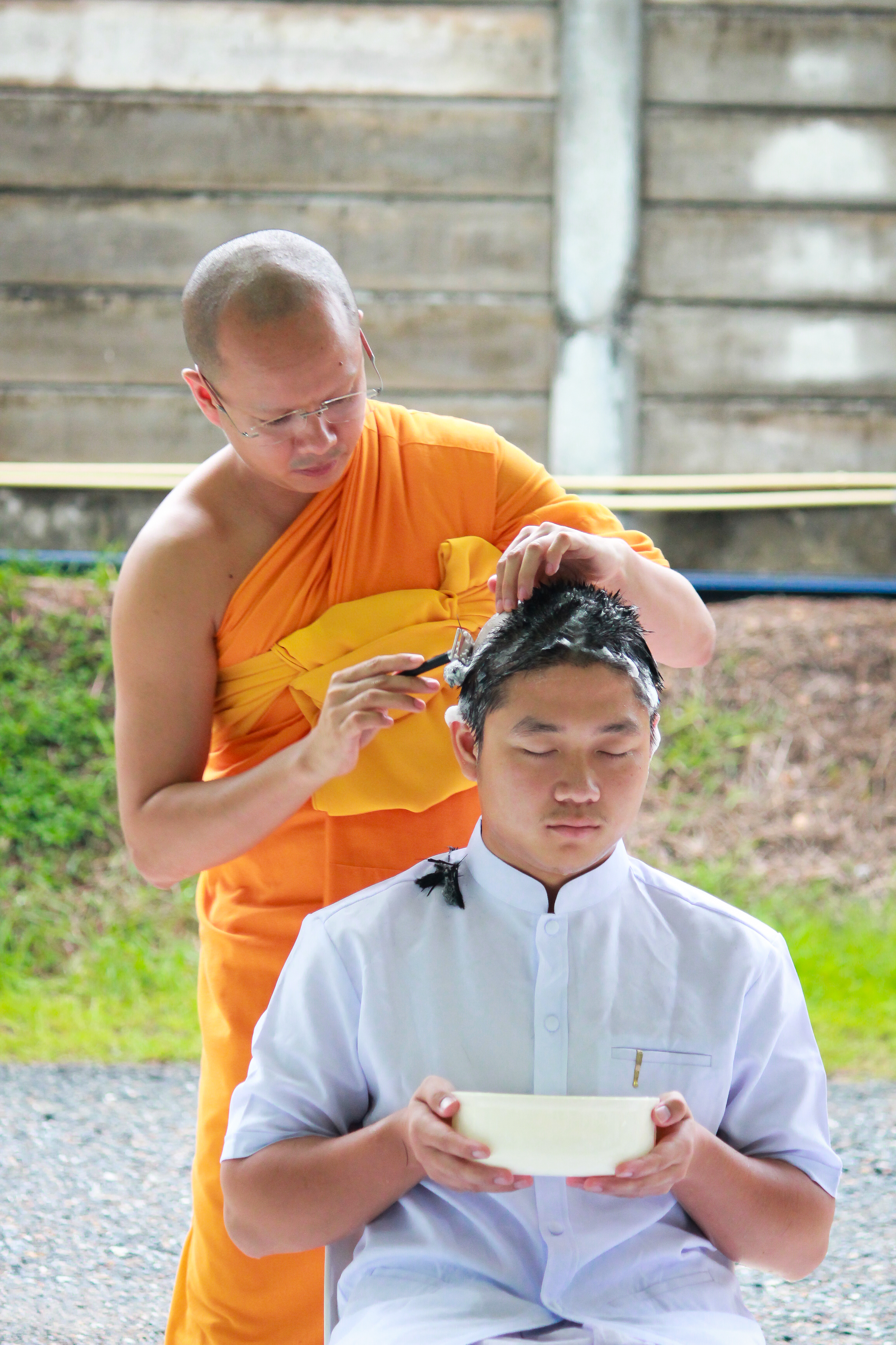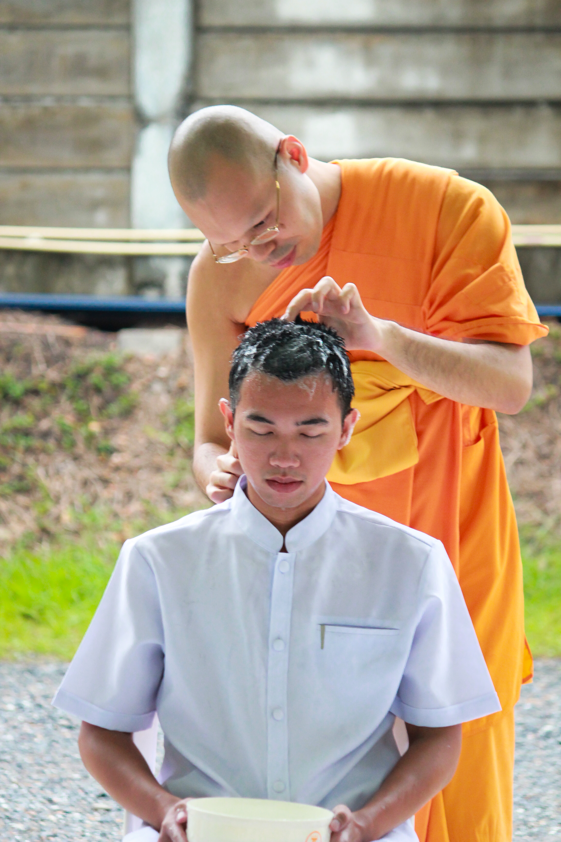 >>>เมื่อรับฟังโอวาทเสร็จนาคธรรมทายาทก็ได้หลับตากลั่นใจให้ผ่องใส และได้แปลแถวเข้าศูนย์กลางพิธี เมื่อกล่าวคำขอตัดปอยผมจากผู้ปกครองและคณะญาติเสร็จ คณะญาติก็ได้ร่วมกันตัดปอยผม