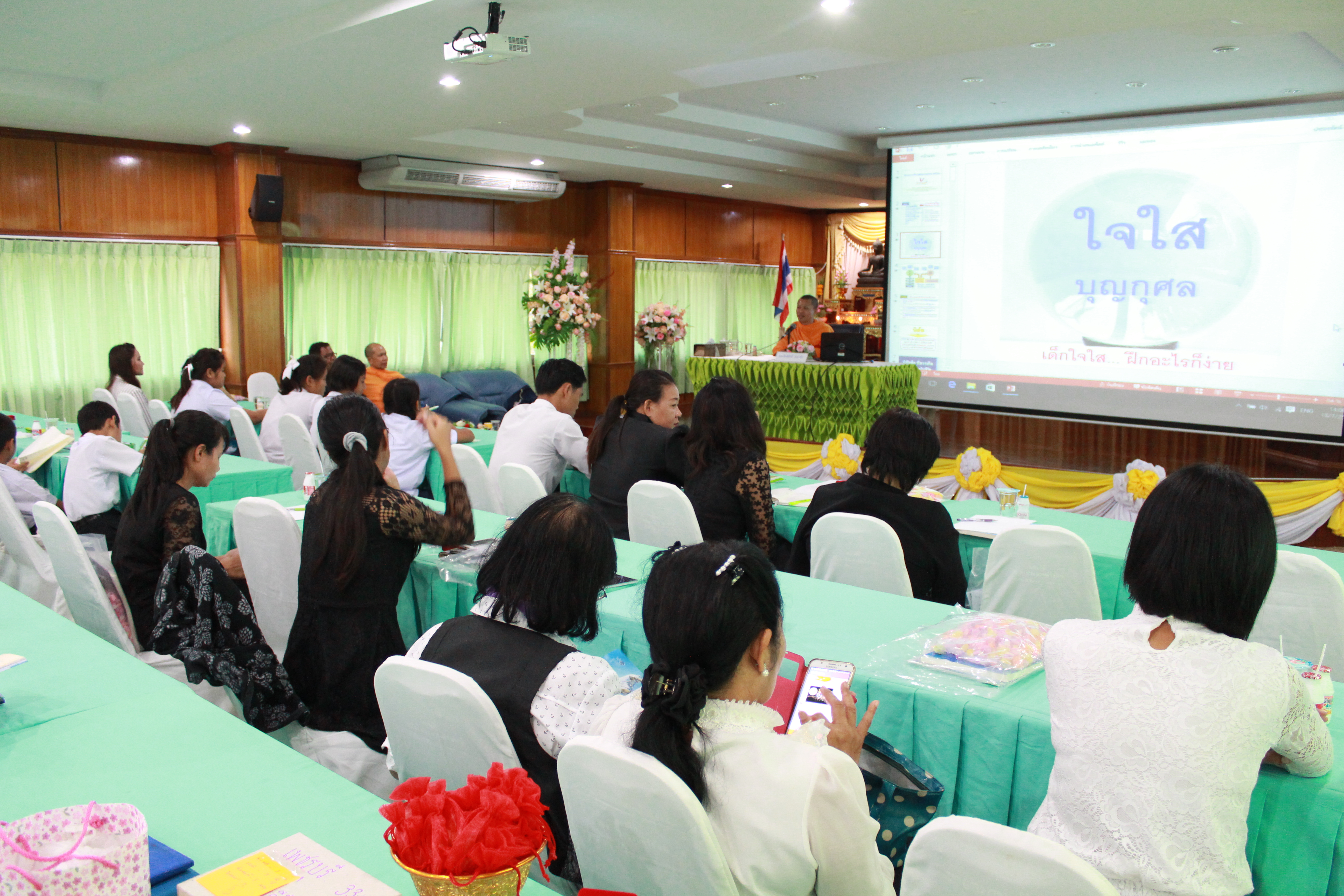 โดยมีคุณครูผู้ประสานงานโครงการจากหลายโรงเรียนให้ความสนใจและร่วมรับฟังสัมมนาในครั้งนี้ ซึ่งก่อนจบการสัมมนามอบสื่อ พระอาจารย์ได้นำคณะครูรวมใจสวดธัมมจักกัปปวัตตนสูตร เพื่อการเป็นต้นบุญต้นแบบของการใจใสและขยายใจใสสู่นักเรียนต่อไป