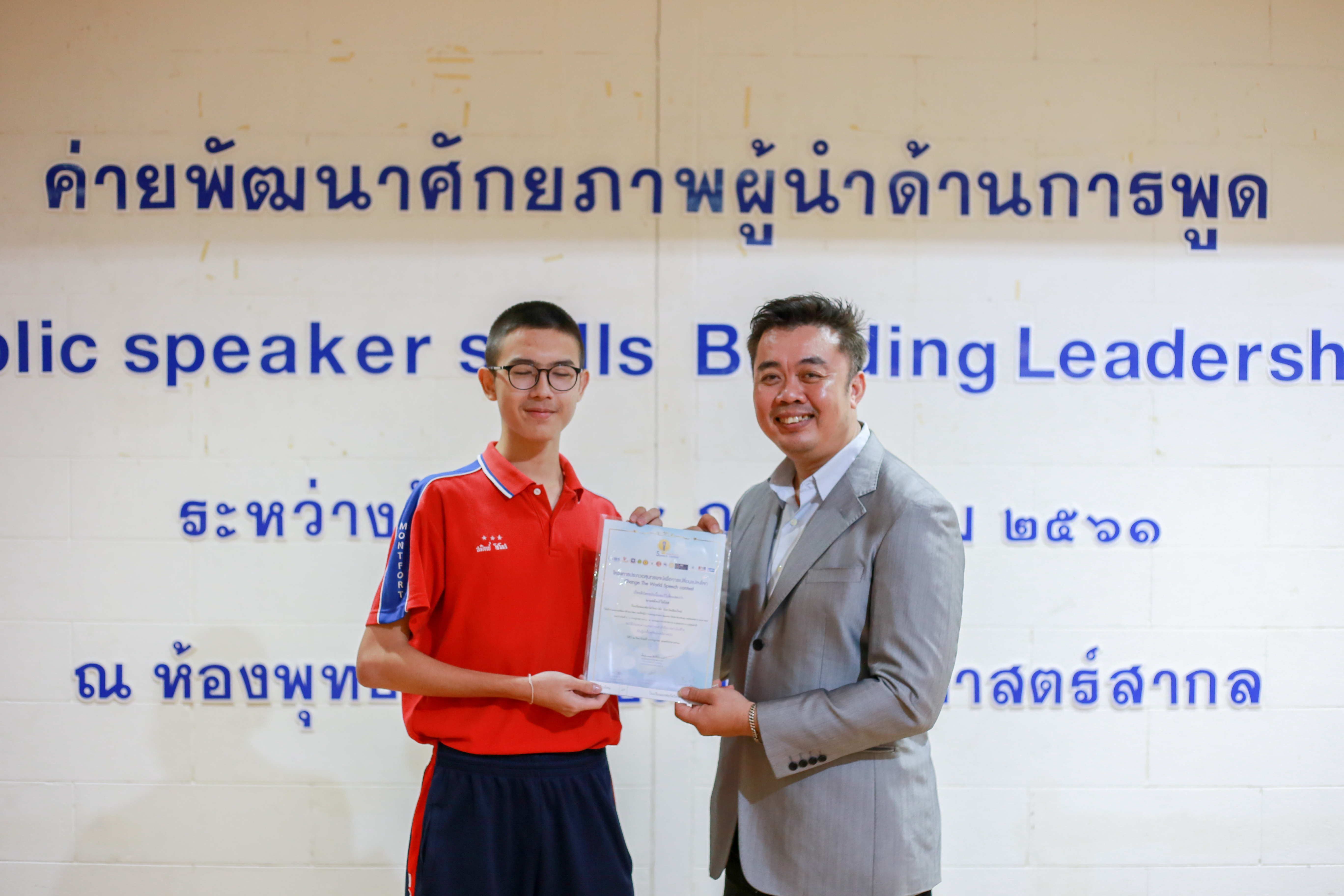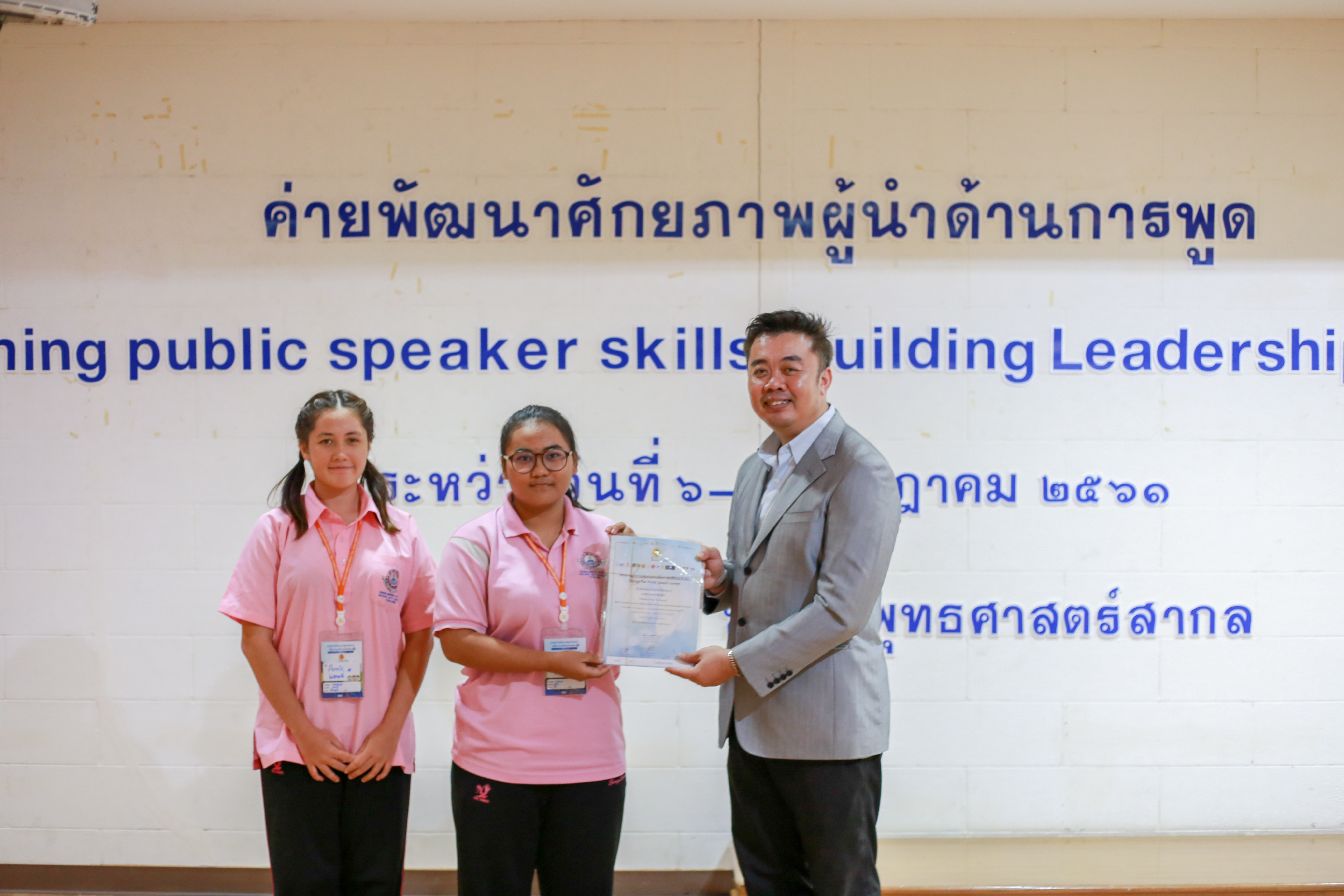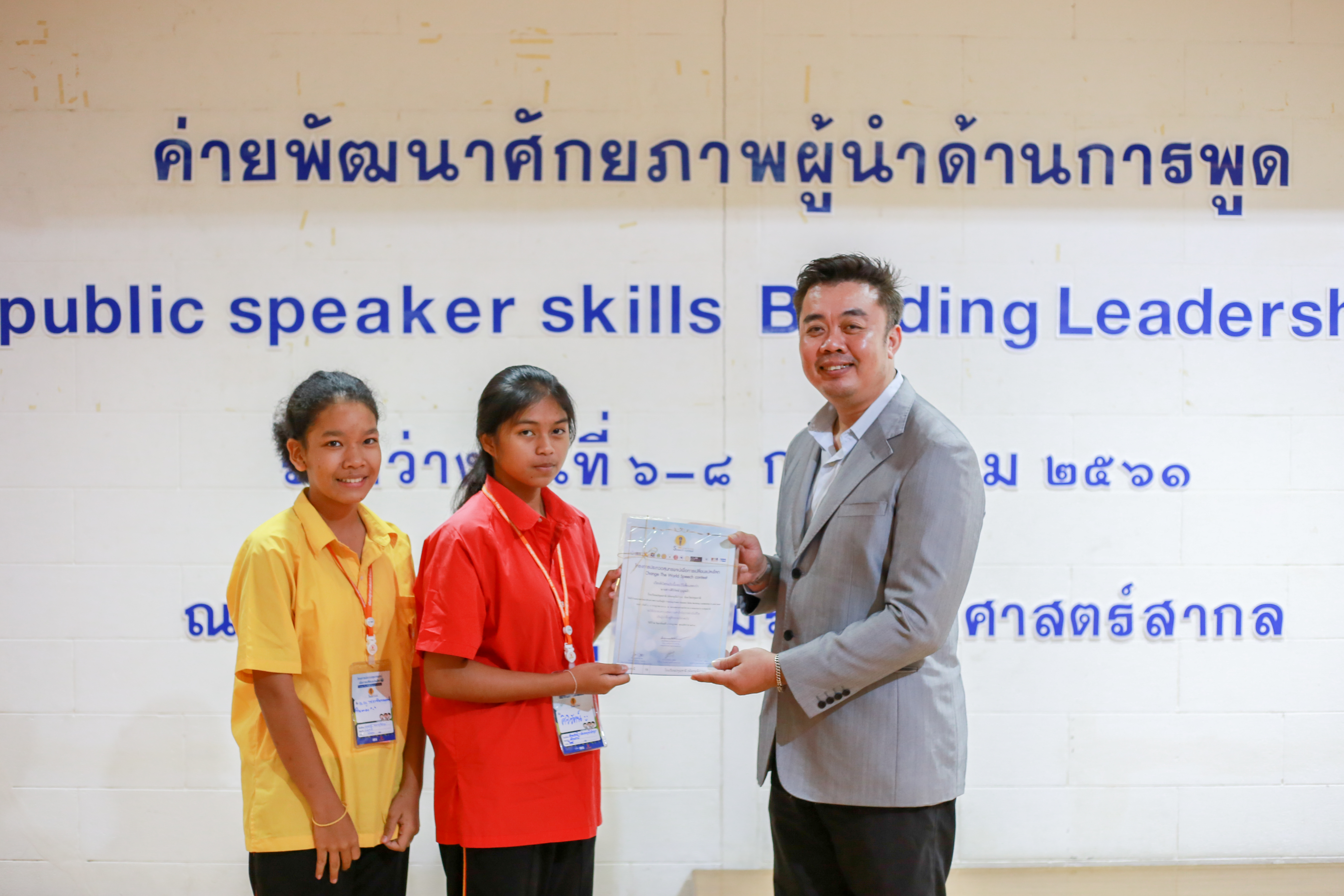 ดร.จอมพล สุภาพ ประธานกรรมการตัดสินโครงการประกวดสุนทรพจน์เพื่อเปลี่ยนแปลงโลกและในช่วงท้ายผู้เข้าร่วมการอบรมรวมทั้งคุณครูได้รับเกียรติบัตรการเข้าร่วมการอบรมจาก