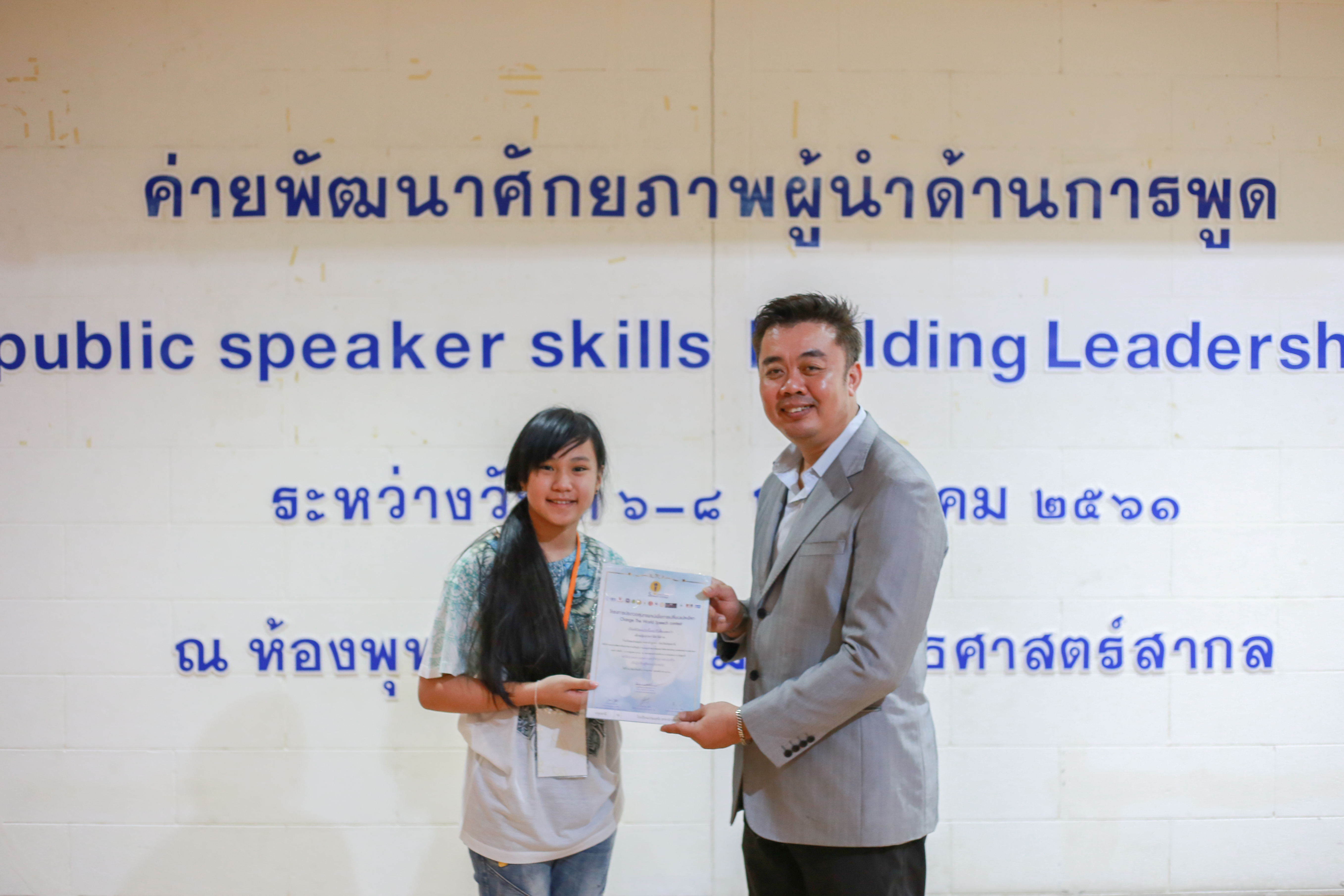 ภาษาไทย ภาษาอังกฤษ ภาษาจีน โดยในภาษาไทยผู้เข้าร่วมการอบรมได้ทำ WORK SHOP เพื่อสร้างแรงบันดาลใจในการพูดสุนทรพจน์