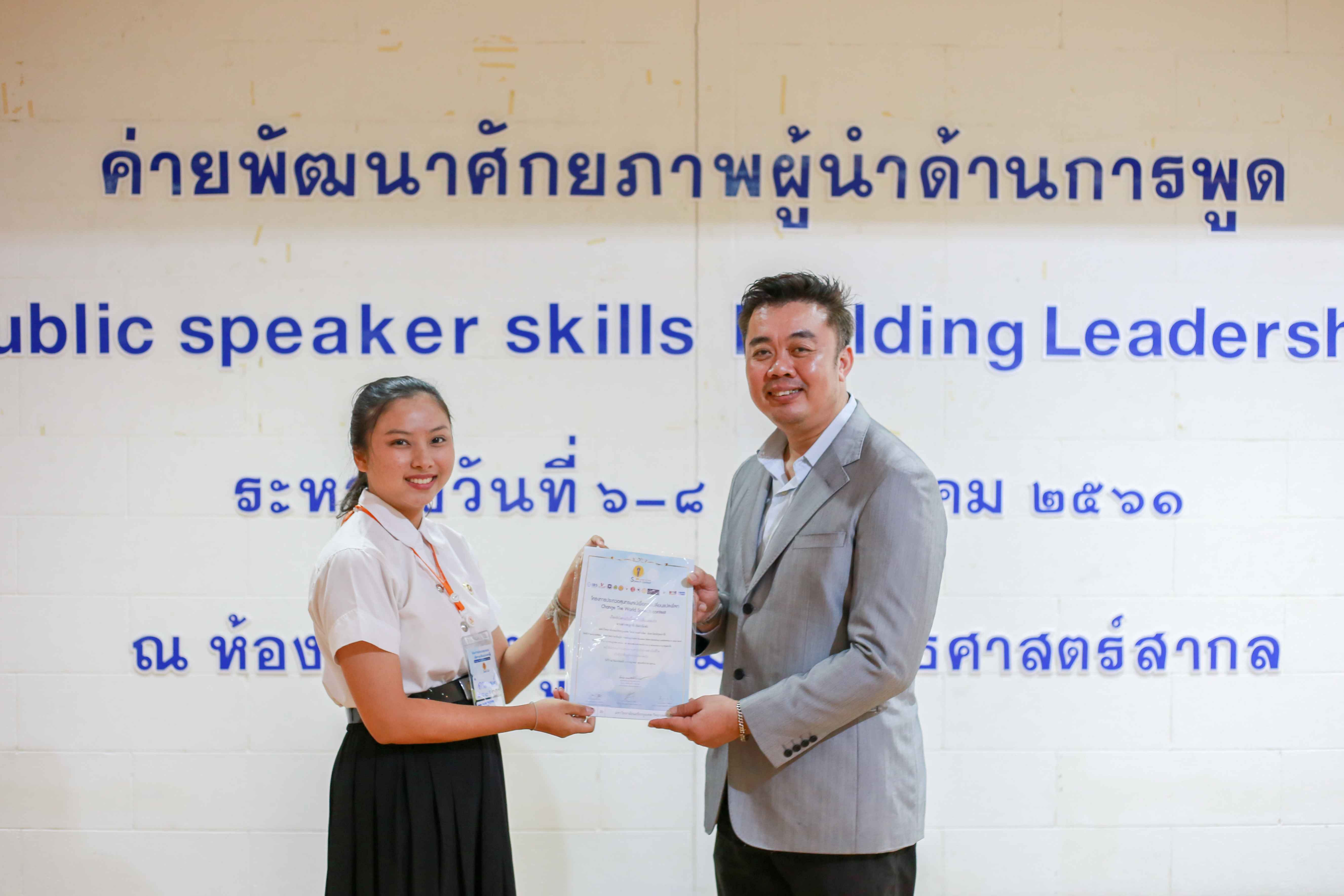| หัวข้อ | การปฐมนิเทศและอบรมพัฒนาศักยภาพความเป็นผู้นำ “Training Public Speaker Skills Building Leadership in your soul” |