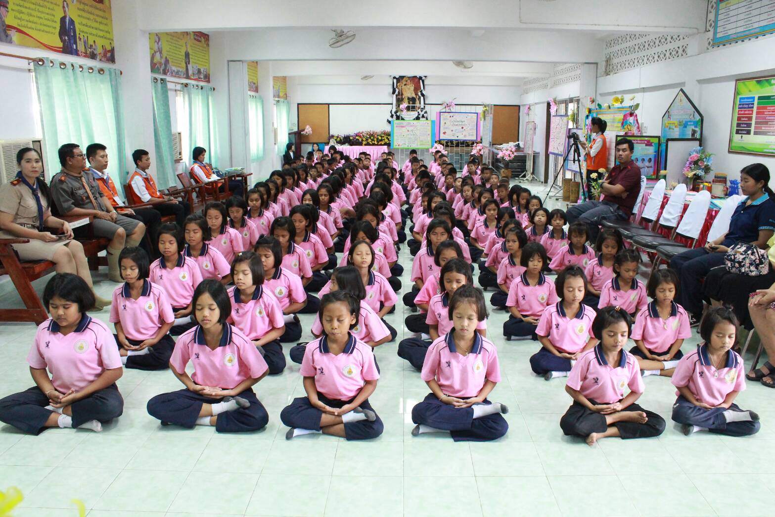 การอบรมห้องเด็กประถมศึกษา 1-6 บรรยากาศเป็นไปอย่างสนุกสนาน พี่ๆ ทีมอบรมมีรอยยิ้ม ความสดใส และขนมหวานไปแจก ทำให้น้องๆ สนุกกับการอบรม ตั้งใจกันอย่างเต็มที่ โดยจดและจำ กระบวนการคิด สติ, สังเกต, ระลึกรู้จำหลักธรรม-วิชาการ และการตัดสินใจในทุกบทฝึก ตลอดจนการปฏิบัติ เพื่อรู้และทำจริงอย่างต่อเนื่อง สำหรับพัฒนาเป็นห้องเรียนต้นแบบทั้งโรงเรียน