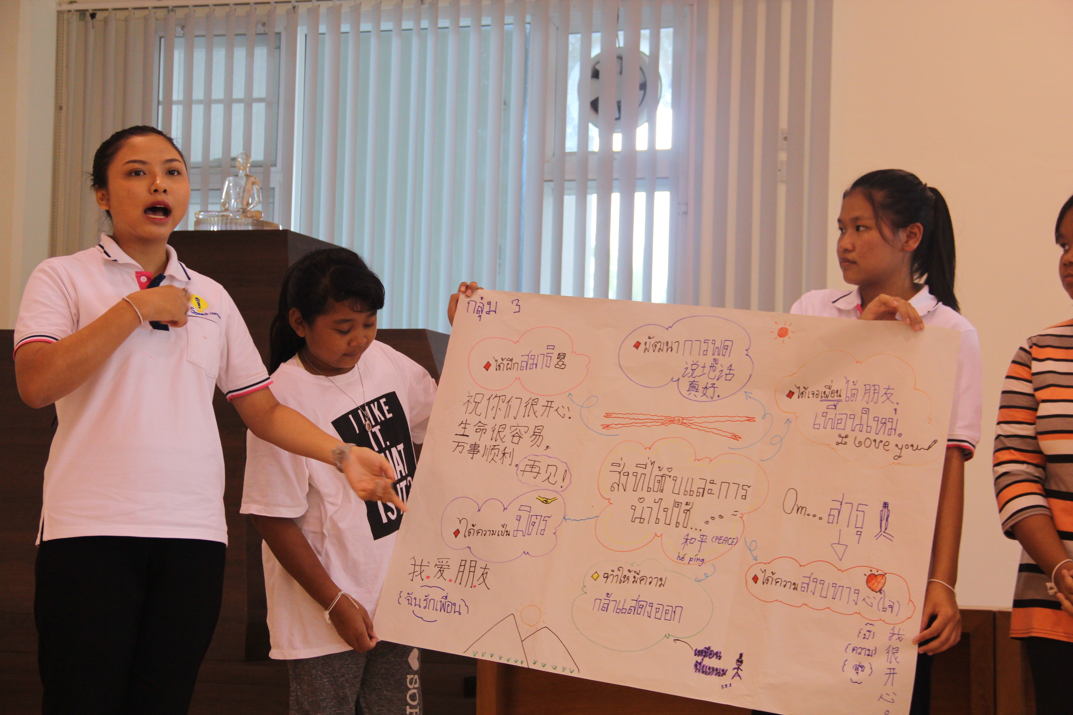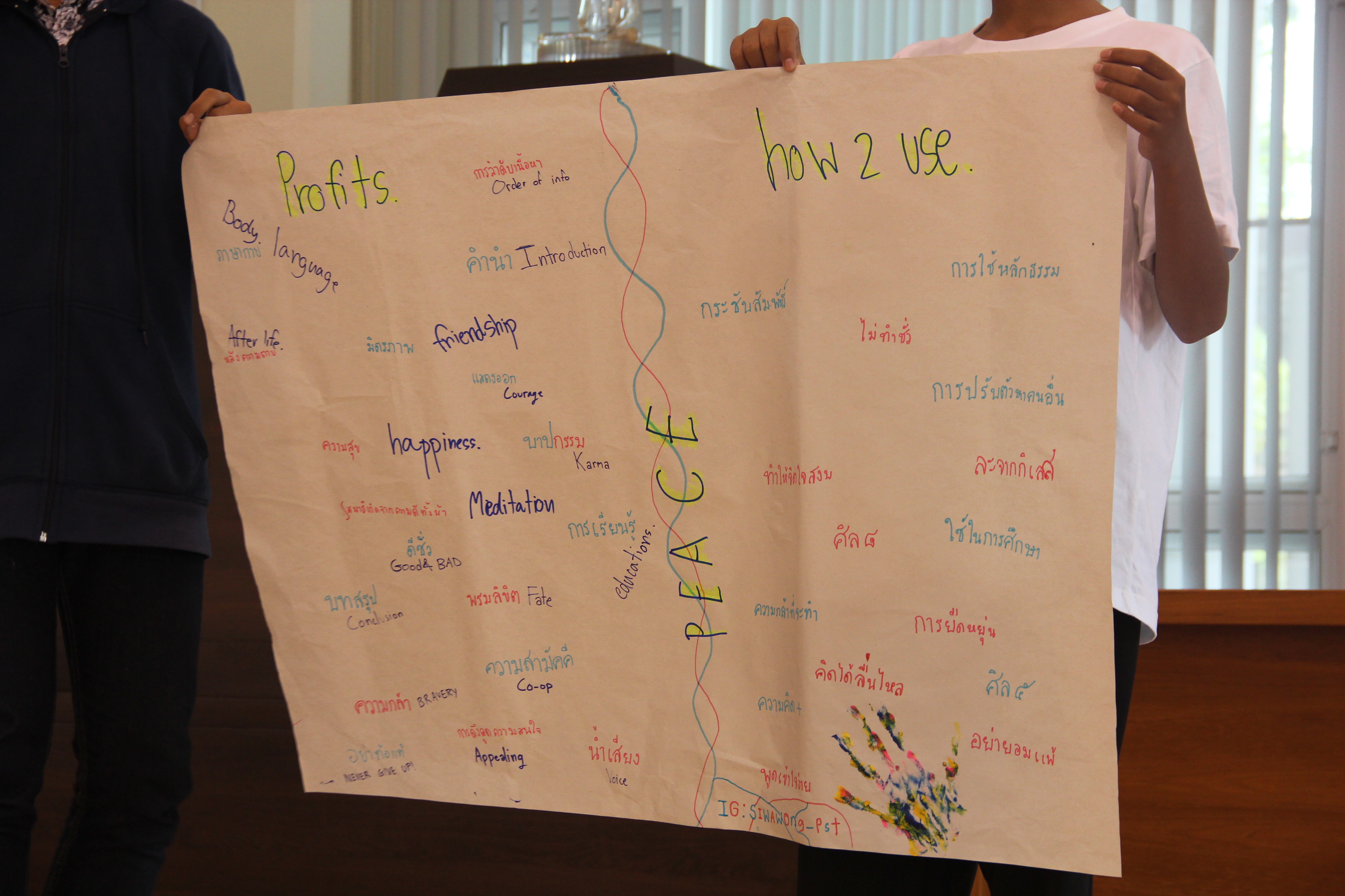 ก่อนที่จะจากกันผู้เข้าประกวดทุกกลุ่มได้ร่วมระดมความในหัวข้อ PEACE สันติภาพ และสิ่งที่ได้รับจากค่ายกับการนำไปใช้ จากการระดมความคิดในครั้งผู้เข้าประกวดทุกๆท่านต่างมีความประทับใจในค่ายครั้งนี้และก็มีเเนวคิดที่อยากให้โลกมีสันติภาพโดยเริ่มต้นจากสันติสุขภายใน