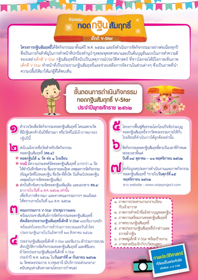 กรุณาส่งใบแจ้งรายชื่อวัดทอดกฐินสัมฤทธิ์เด็กดี V-Star (ศล.๔)