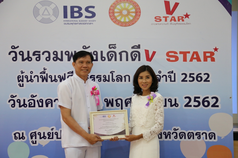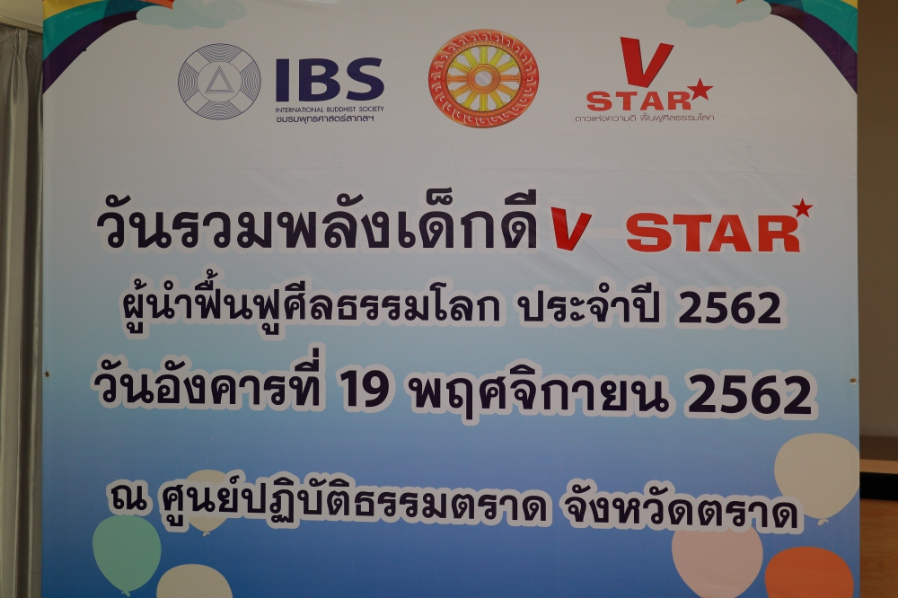 ด้วยโครงการฟื้นฟูศีลธรรมโลก ร่วมกับศูนย์ส่งเสริมศีลธรรมประจำจังหวัด และหน่วยงานภาครัฐ “วันรวมพลังเด็กดี V-Star ผู้นำฟื้นฟูศีลธรรมโลก ประจำปีพุทธศักราช 2562” จังหวัดตราด ขึ้นในวันอังคารที่ 19 พฤศจิกายน 2562 ณ ศูนย์ปฏิบัติธรรมตราด อ.เขาสมิง จ.ตราด โดยมีคณะครูและนักเรียนร่วมงานกว่า 200 คน โดยมีวัตถุประสงค์เพื่อรวมพลังสร้างความดี และเจริญสมาธิภาวนาถวายเป็นพุทธบูชา ต่อยอดกิจกรรมการเรียนรู้ในโครงการ และปลูกฝังจิตสานึกในการเป็นดาวแห่งความดีผู้นำฟื้นฟูศีลธรรมโลก (เด็กดี V-Star) ให้ยิ่งๆ ขึ้นไป ตลอดจนเพื่อส่งเสริมการเรียนรู้พระพุทธศาสนาและกฎแห่งกรรมผ่านการรับชมภาพยนตร์ Animation “พุทธประวัติ” และการร่วมกิจกรรมฐาน Activity Base Learning “ห้องเรียนแห่งความดี” “บทฝึกกิจวัตรเด็กดี V-Star” และ “ธัมมจักกัปปวัตตนสูตร” อีกทั้งนักเรียนจะได้ร่วมการ ทดสอบความรู้พื้นฐานบทฝึกเด็กดี V-Star เพื่อเป็นการประมวลความรู้กิจกรรมในวันงาน และการฝึกฝนอบรมตนเองอีกด้วย