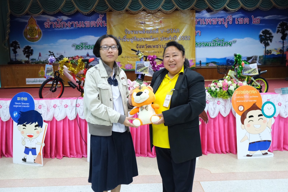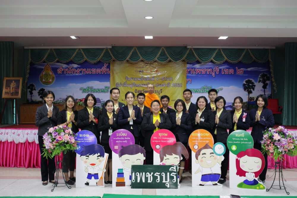 ด้วยโครงการฟื้นฟูศีลธรรมโลก ร่วมกับศูนย์ส่งเสริมศีลธรรมประจำจังหวัด และหน่วยงานภาครัฐ “วันรวมพลังเด็กดี V-Star ผู้นำฟื้นฟูศีลธรรมโลก ประจำปีพุทธศักราช 2562” จังหวัดเพชรบุรี ขึ้นในวันเสาร์ที่ 7 ธันวาคม 2562 ณ สำนักงานเขตพื้นที่การศึกษาประถมศึกษาเพชรบุรี เขต 2 ห้องประชุมเกษมกลั่นยิ่ง จ.เพชรบุรี โดยมีคณะครูและนักเรียนร่วมงานกว่า 300 คน โดยมีวัตถุประสงค์เพื่อรวมพลังสร้างความดี และเจริญสมาธิภาวนาถวายเป็นพุทธบูชา ต่อยอดกิจกรรมการเรียนรู้ในโครงการ และปลูกฝังจิตสานึกในการเป็นดาวแห่งความดีผู้นำฟื้นฟูศีลธรรมโลก (เด็กดี V-Star)ให้ยิ่งๆ ขึ้นไป ตลอดจนเพื่อส่งเสริมการเรียนรู้พระพุทธศาสนาและกฎแห่งกรรมผ่านการรับชมภาพยนตร์ Animation “พุทธประวัติ” และการร่วมกิจกรรมฐาน Activity Base Learning “ห้องเรียนแห่งความดี” “บทฝึกกิจวัตรเด็กดี V-Star” และ “ธัมมจักกัปปวัตตนสูตร” นักเรียนจะได้ร่วมกิจกรรมในวันงานต การฝึกฝนอบรมตนเองเพื่อพัฒนาทักษะต่างๆอีกด้วย
