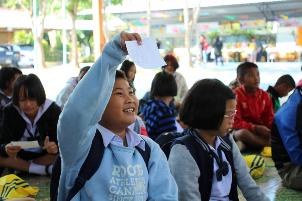 จับสลากของรางวัลพิเศษจากผู้ใหญ่ใจดี