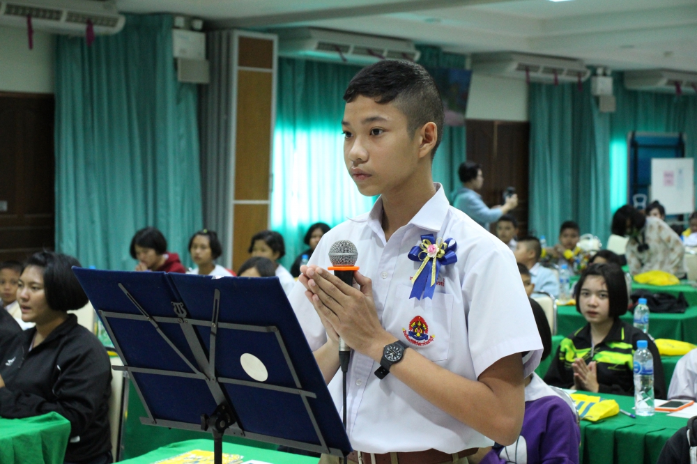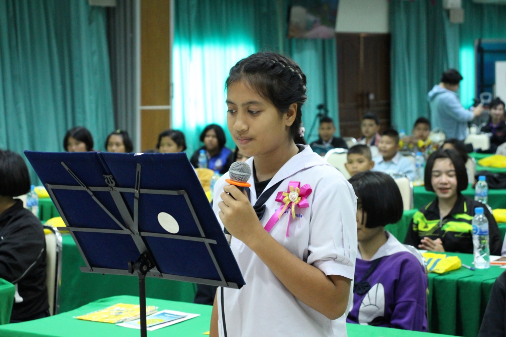 ตัวแทนกล่าวคำปฏิญาณตนเด็กดี V-STAR จากโรงเรียนบ้านห้วยกวางจริง