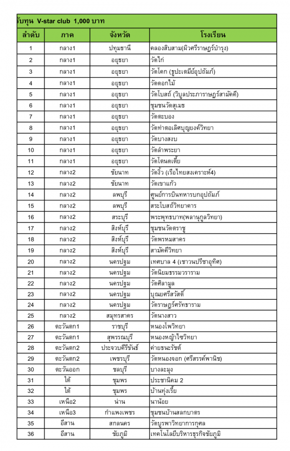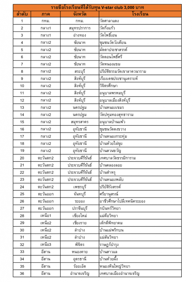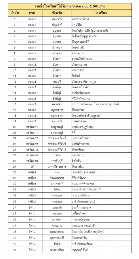 ประกาศ !! รายชื่อสถานศึกษาที่ได้รับทุนดำเนินการชมรม V-Star Club(ทั่วประเทศ) ปีการศึกษา 2562