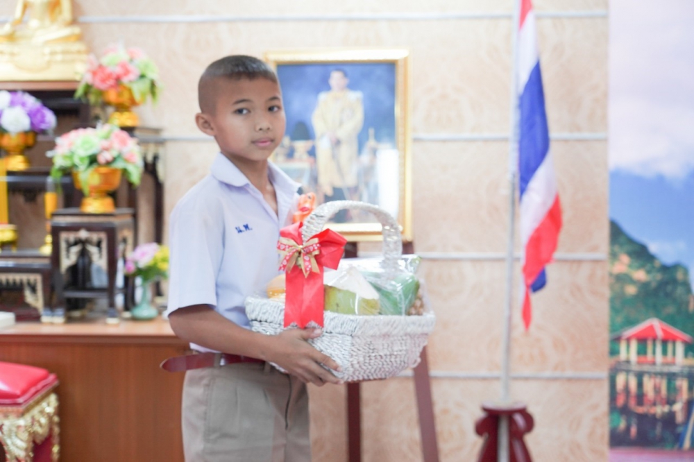 ตัวแทนถวายกระเช้าผลไม้จากโรงเรียนบ้านหนองพลับ