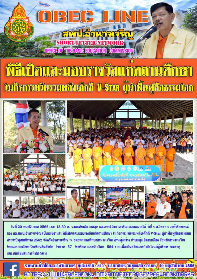 | หัวข้อ | วันรวมพลังเด็กดี V-Star ผู้นำฟื้นฟูสีลธรรมโลก จ. อำนาจเจริญ |