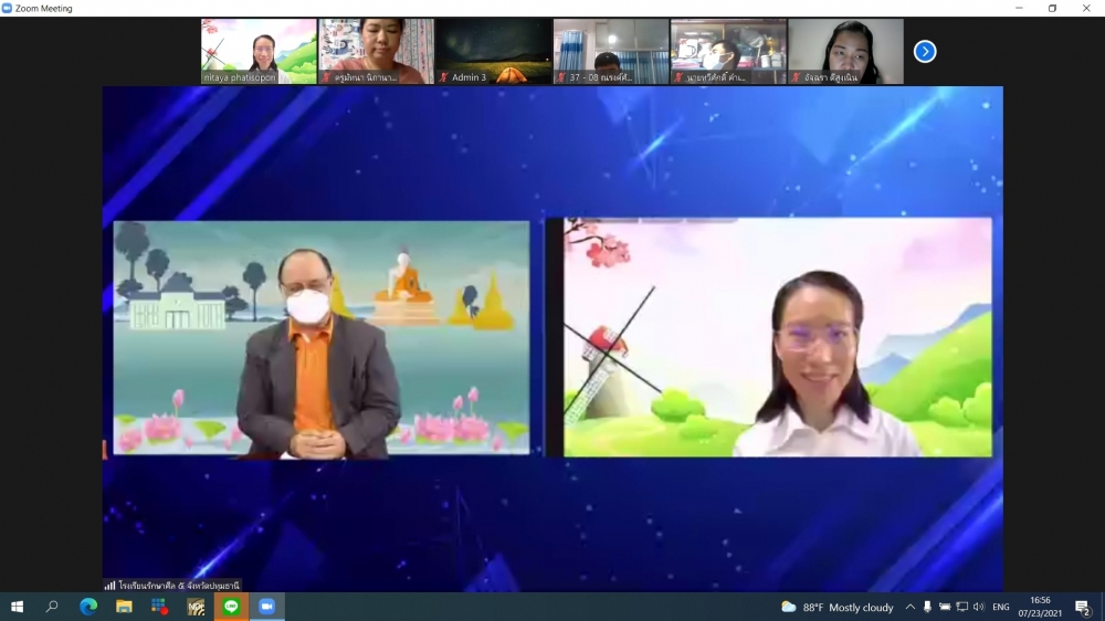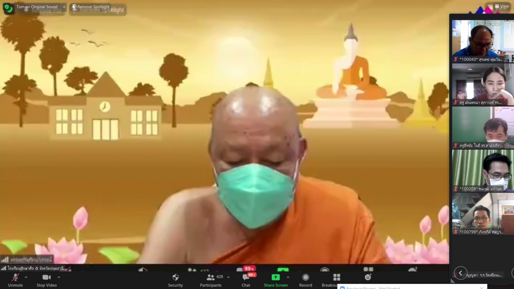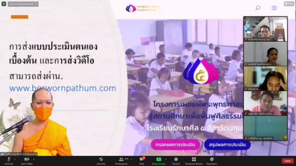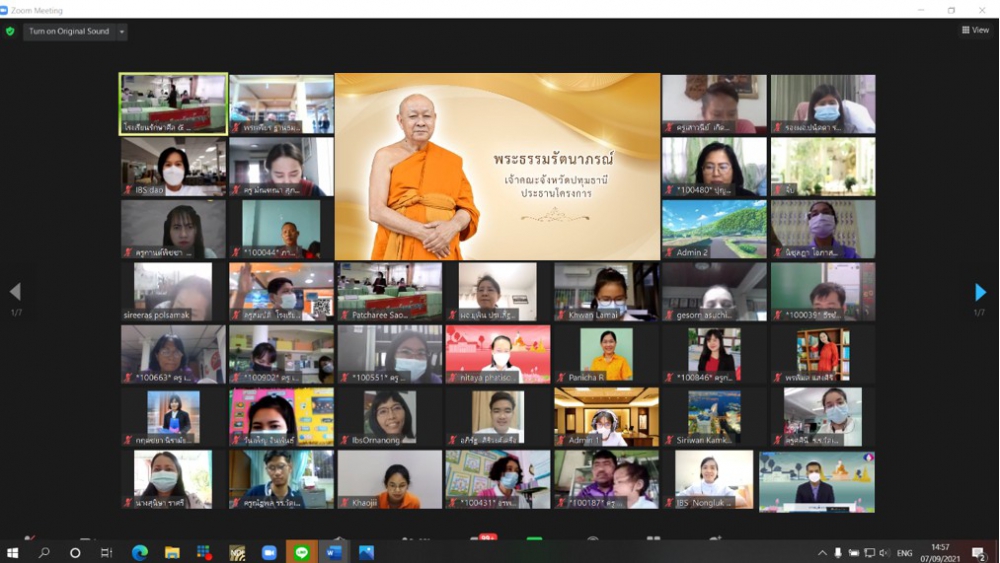 จากนั้นได้ดำเนินการจัดกิจกรรมของโครงการต่อ โดยการจัดอบรมครูครั้งที่ 1 ขึ้น ในวันที่ 23 กรกฎาคมที่ผ่านมา ผ่านแอพพลิเคชัน ZOOM เพื่อเป็นการสืบสาน รักษา และต่อยอดการพัฒนาคุณภาพการศึกษา ควบคู่กับการปลูกฝัง คุณธรรมนำวิชาการด้วยบทฝึกนิสัยบัณฑิตนักปราชญ์ “รักษ์บวร รักษ์ศีล 5 รักษ์ปทุมธานี” ซึ่งในการอบรมคณะครูได้ฟังการบรรยายจากวิทยากรคือ พระอาจารย์วิโรจน์ อุคคจิตโต หัวหน้าศูนย์นวัตกรรมการเรียนรู้ และ คุณนิตยา ผาติโสภณ หัวหน้าศูนย์ส่งเสริมมาตรฐานศีลธรรมโลก ชมรมพุทธศาสตร์สากล ในหัวข้อเกณฑ์การประเมินโครงการ และการบรรยายหลักสูตร การพัฒนาผู้เรียนให้เก่งและดี ในยุค New Normal ด้วยบทฝึกพัฒนานิสัยบัณฑิตนักปราชญ์ ซึ่งอัตลักษณ์ ที่ส่งเสริมในปี 2564 คือ “ยิ้มง่าย ไหว้สวย รวยปิยวาจา มีสมาธิ” พร้อมทั้งแนวทางการสอนบทฝึกต่างๆ ในยุค New Normal, กระบวนการฝึกนักเรียน, แนวทางการสอน แบบบูรณาการ สำหรับการอบรมครูในโครงการโรงเรียนรักษาศีล 5 จังหวัดปทุมธานี ประจำปีการศึกษา 2564 ครั้งที่ 2 จะจัดขึ้นอีกครั้งในวันที่ 6 สิงหาคมนี้
