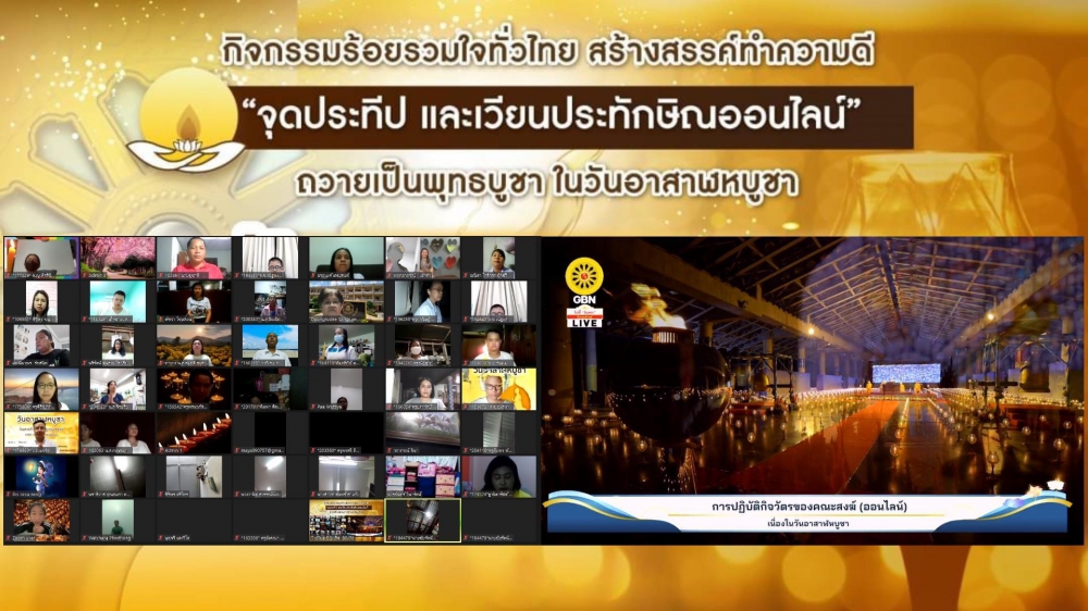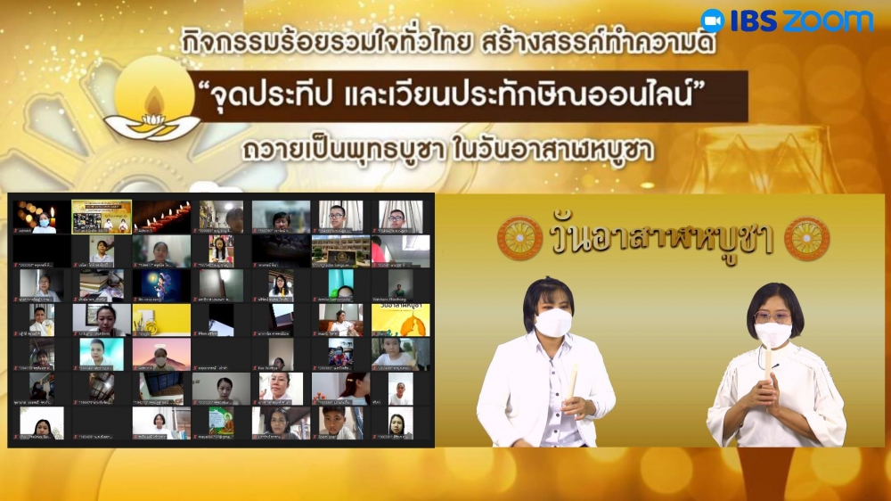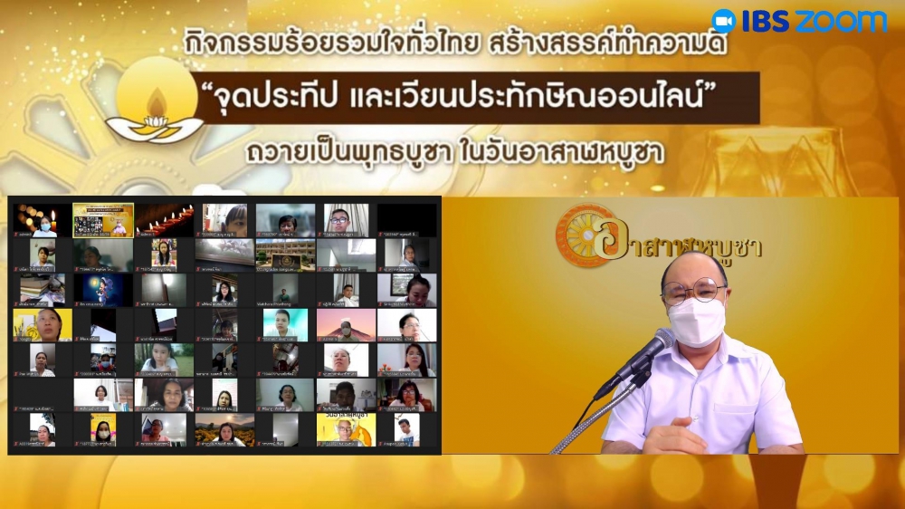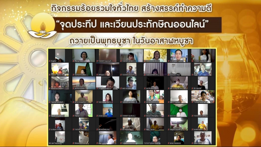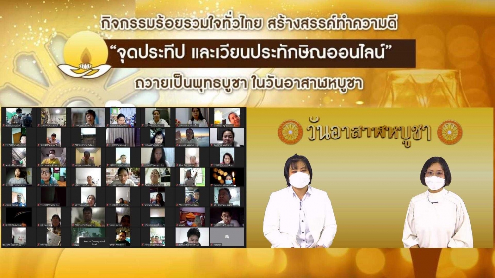 | หัวข้อ | กิจกรรมร้อยรวมใจทั่วไทย สร้างสรรค์ทำความดี "จุดประทีปและเวียนประทักษิณออนไลน์" ถวายเป็นพุทธบูชา ในวันอาสาฬหบูชา |