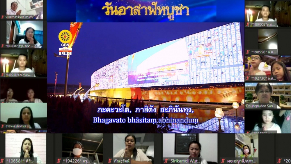 วันที่ 24 กรกฎาคมที่ผ่านมา เนื่องในวันสำคัญสากลโลกคือวันอาสาฬหบูชา หรือวันขึ้น 15 ค่ำ เดือน 8 เป็นวันที่พระพุทธเจ้าทรงแสดงพระธรรมที่ตรัสรู้เป็นครั้งแรก โดยแสดงปฐมเทศนาอันได้แก่ ธรรมจักรกัปปวัตตนสูตร และเกิดพระรัดตนตรัยครบทั้ง 3 ประการ คือ พระพุทธ พระธรรม พระสงฆ์ จึงถือได้ว่าวันนี้เป็นวันเริ่มต้นประกาศพระพุทธศาสนาแก่ชาวโลก บุคลากรทางการศึกษา นักเรียนและนักศึกษาทั่วประเทศจึงได้ร่วมกิจกรรมการจุดประทีปถวายเป็นพุทธบูชาในรูปแบบออนไลน์ผ่านแอปพลิเคชั่น Zoom เพื่อเติมบุญกุศล และเสริมสิริมงคลในวันสำคัญต่างๆ ตลอดจนสร้างกำลังใจในสถานการณ์การแพร่ระบาดของโรคติดเชื้อไวรัสโคโรน่า 2019