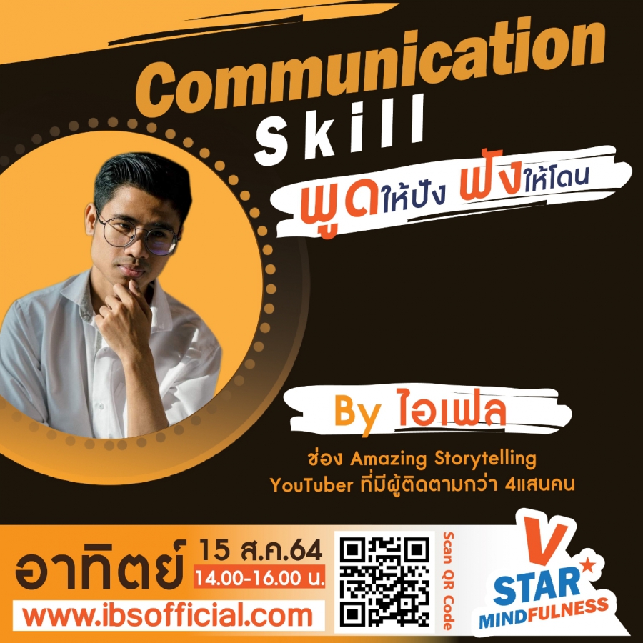 คอร์ส Communication Skill พูดให้ปัง ฟังให้โดน นี้จะจัดอบรมขึ้นอีกครั้งในวันอาทิตย์ที่ 22 สิงหาคม พ.ศ.2564 เวลา 14.00-16.00 น. โดยได้รับเกียรติจากคุณครูครูเงาะ รสสุคนธ์ กองเกตุ สนใจลงทะเบียนเข้าร่วมกิจกรรมที่เว็บไซต์ https://www.ibsofficial.com/vstar/