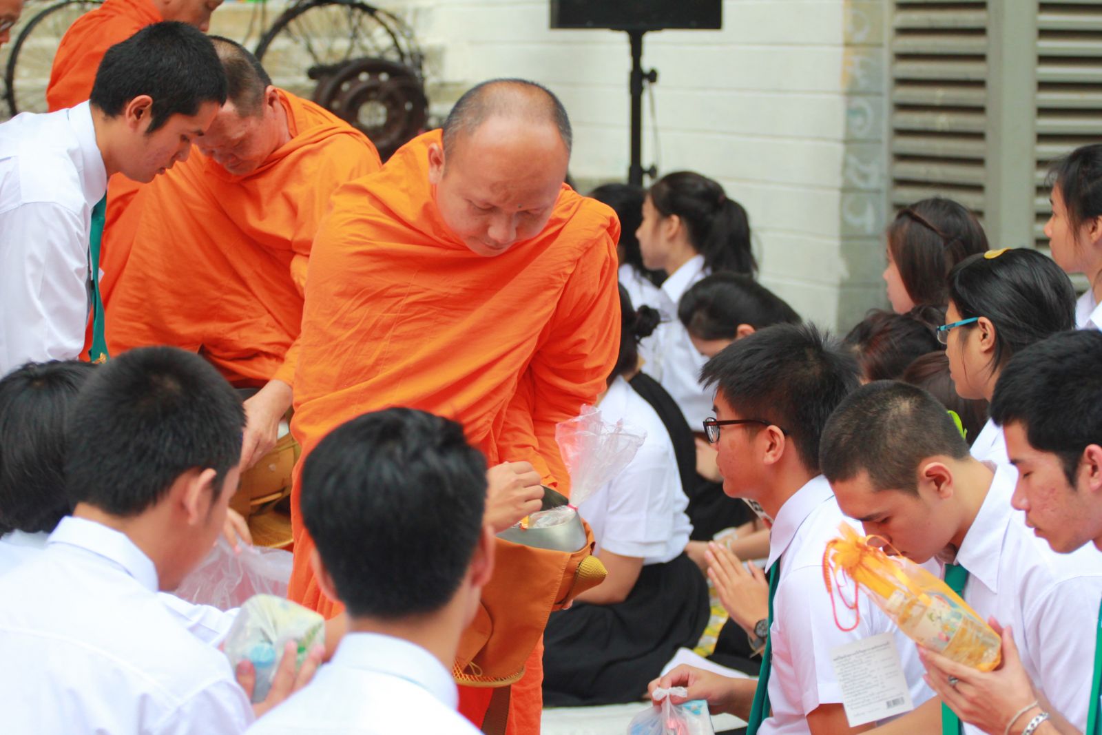 ชมรมพุทธมหาวิทยาลัยน้องใหม่ มหาวิทยาลัยศิลปากร จัดพิธีตักบาตรต้อนรับน้องใหม่ประจำปีการศึกษา 2557