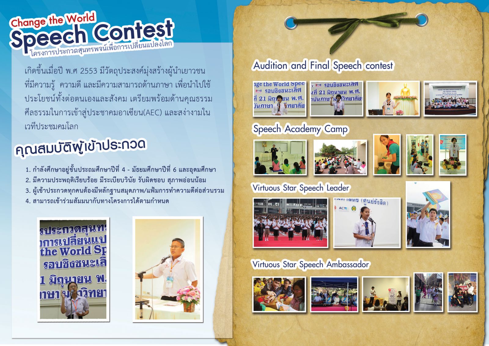 ปลุกศักยภาพความเป็น"ผู้นำ"ในตัวคุณ กับโครงการประกวดสุนทรพจน์เพื่อการเปลี่ยนแปลงโลก"Change The world speech contest" ครั้งที่ 6