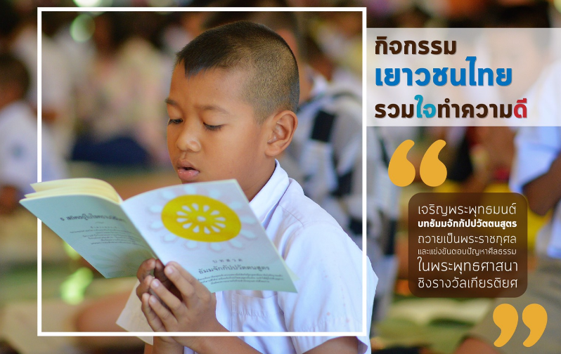 “กิจกรรมเยาวชนไทยรวมใจทำความดี เจริญพระพุทธมนต์บทธัมมจักกัปปวัตตนสูตรถวายเป็นพระราชกุศลและแข่งขันตอบปัญหาศีลธรรมในพระพุทธศาสนา ชิงรางวัลเกียรติยศ”