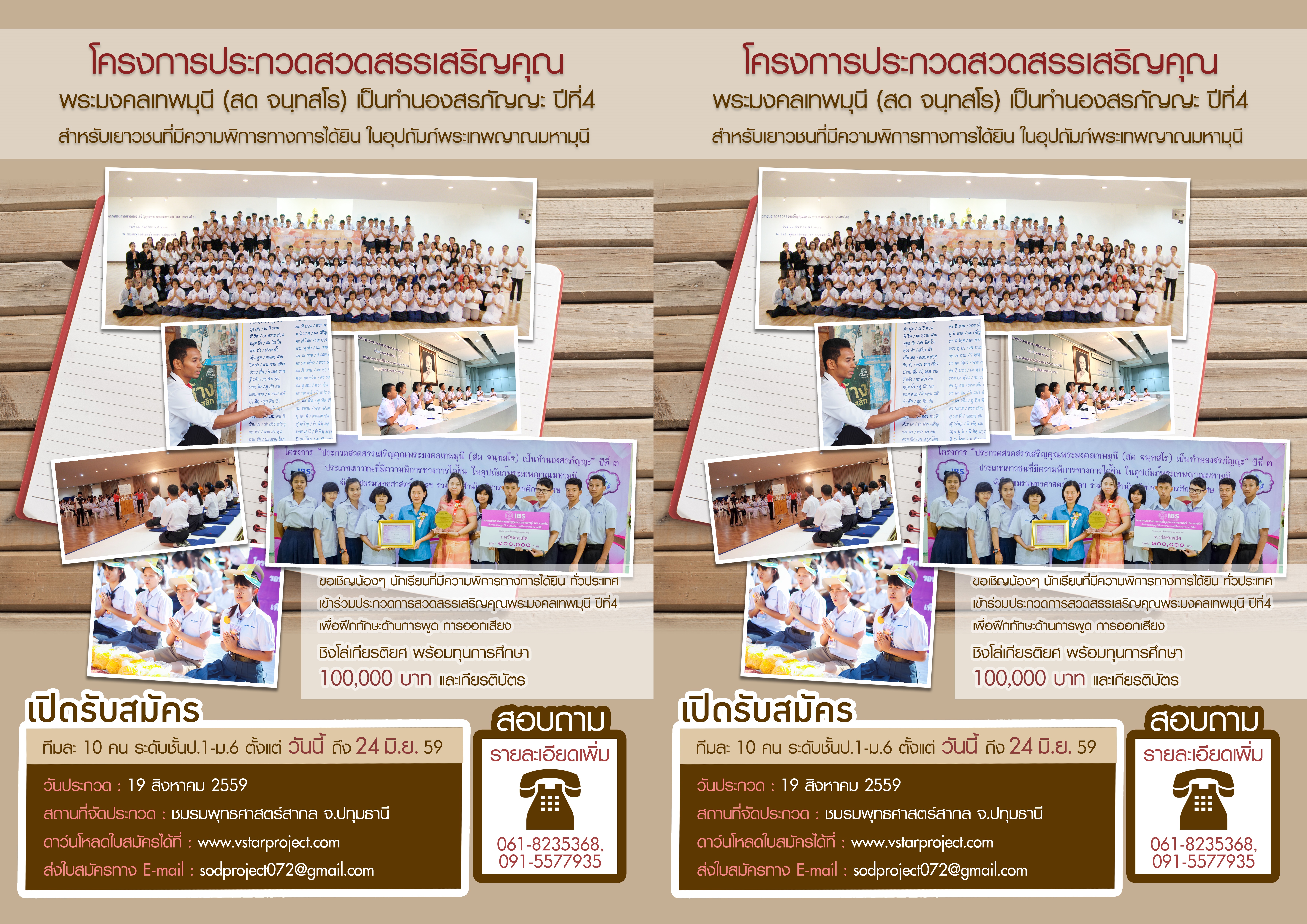 เปิดรับสมัคร นักเรียนที่มีความพิการทางการได้ยิน เข้าร่วม โครงการประกวดสวดสรรเสริญคุณพระมงคลเทพมุนี (สด จนฺทสโร) เป็นทำนองสรภัญญะ ปีที่ ๔